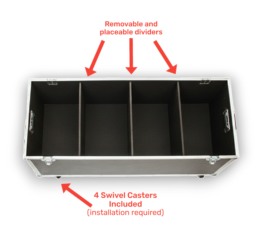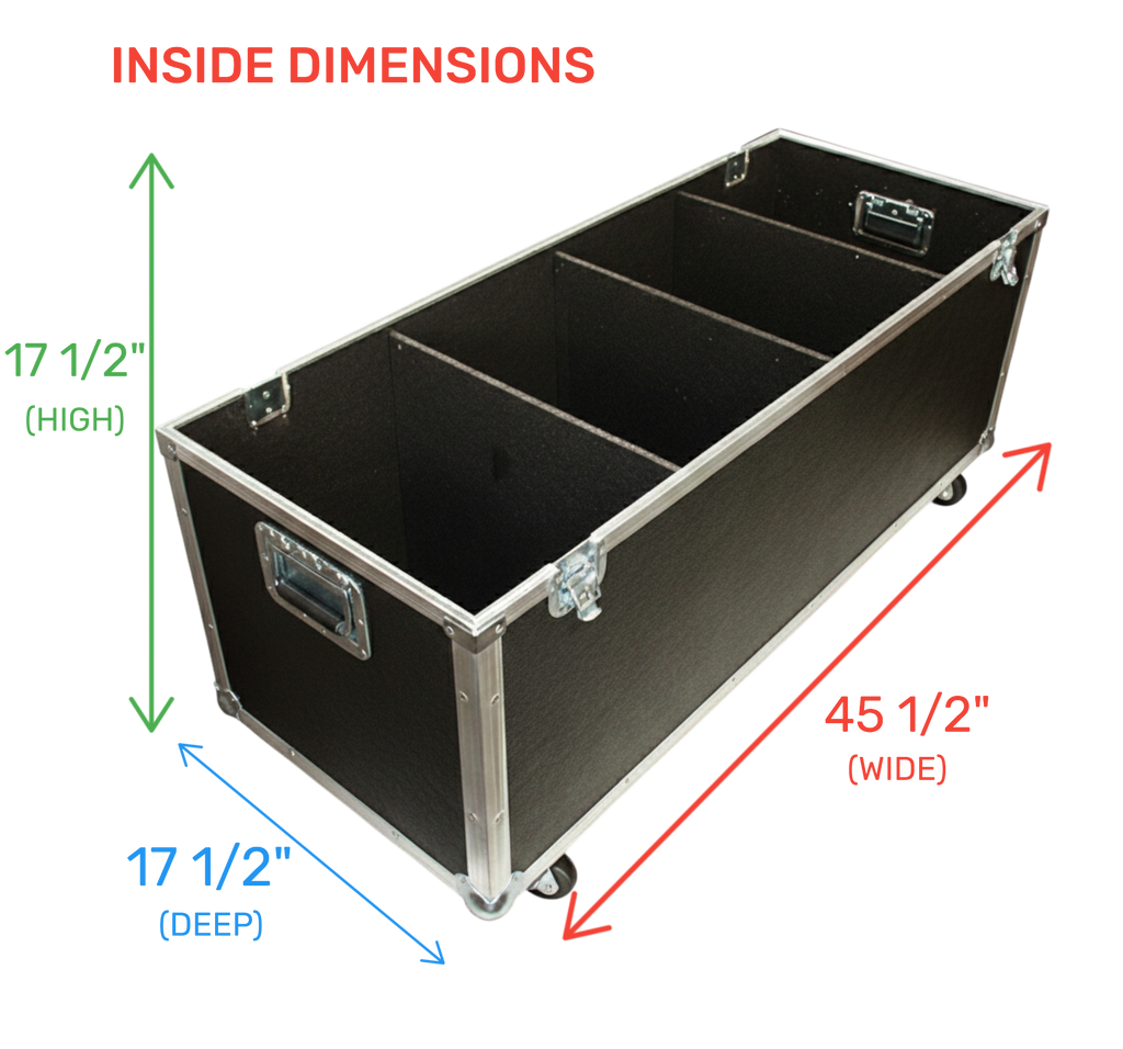 Protect and transport your medium-to-large equipment with the 45 1/2"x17 1/2"x17 1/2" ATA Equipment & Supply Case with Wheels. Crafted from durable 1/4" plywood (upgradeable to 3/8"), with a heavy PVC laminate exterior and carpet-lined interior, this case shields your gear from scratches, dents, and shocks. Recessed spring-loaded handles and recessed latches prevent damage during transport, while ball corners and aluminum binding ensure long-lasting durability. The included caster kit makes moving heavy equipment effortless. Made in the USA, this case is ideal for AV professionals, photographers, musicians, and contractors who demand secure, reliable, and professional-grade transport for their equipment.